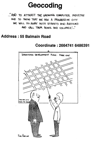 Addresses are made up for convenience to provide a logical on the ground location for a property. They do not show up in the survey system at all. Sometimes addresses get changed to keep numbering sequential. For a long time the New Zealand’s addresses were maintained purely to facilitate voting. Addresses are how people refer to land because no one wants to say “I’m going around the corning to PAR_ID 5481547”. In addition to Address, Title and Parcels; Dwellings, Owners and Property ID are also used to refer to land. Too keep the country running along smoothly these records are kept meticulously and complex associations are built between them. One title may refer to one or more parcels. One address may refer to many titles and many parcels. Many systems are involved in keeping this data linked and GIS is the ideal tool for visualizing the outputs.