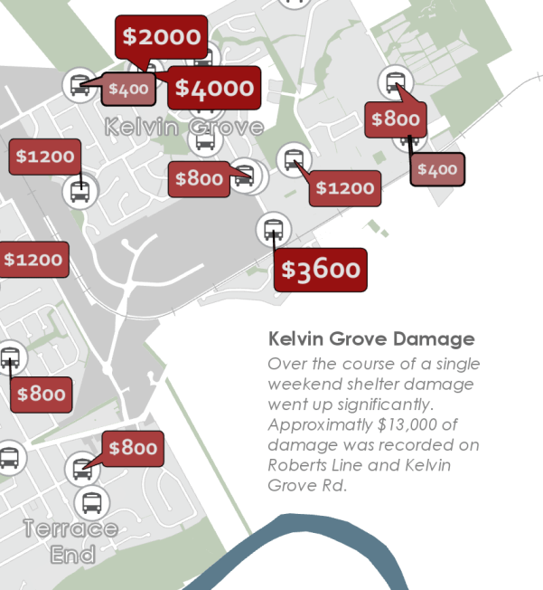 A cities public transport network relies on having sheltered dry places to wait for the next bus; especially in a student city. Damage to this infrastructure affects the whole service.