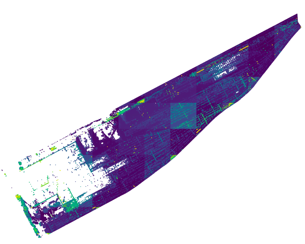 While we have .las, models, drone photography and .obj files, in order to solve a routing problem you have to build a network. Diggiging through the fancy data formats we found some .pdf’s and .dwg files which appear as if they may be geolocated but ultimately we wanted to extract a network.