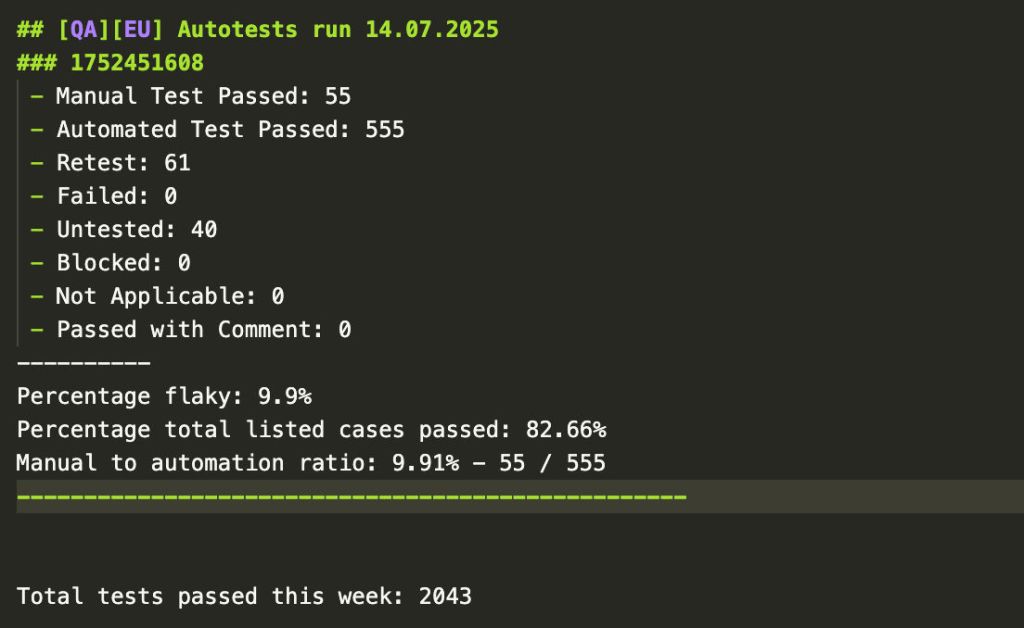 - AI Assistance – Get a test report of every case into a .md or .txt file then AI can help with everything from spelling errors to coverage.