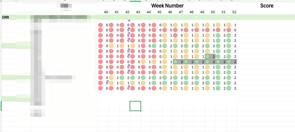 Another view, although a non spatial one is to traffic light the individual MS and subjects by week so I can get a clearer picture to the goal + the deployment status.